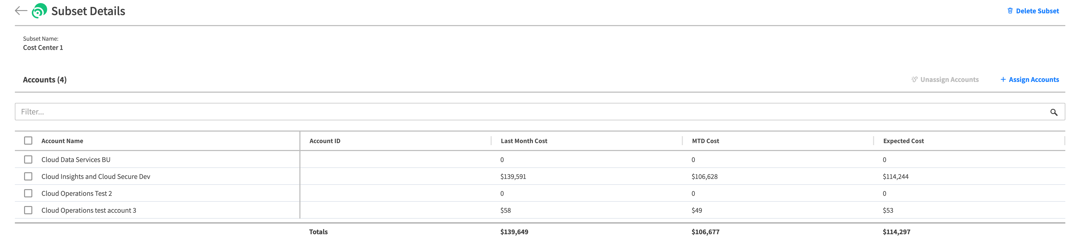 - An organization that needs to see cost analysis based on divisions (e.g., Sales, Marketing, and R&D) or business units. For example, you might set up one subset for R&D, one for DevOps, and one for Customer Support.