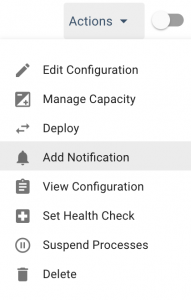 1. In your Elastigroup, click Actions > Add Notifications.
