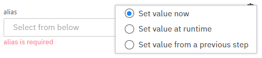 Above the InstanceIds field, click the settings icon and select Set value from the previous step.