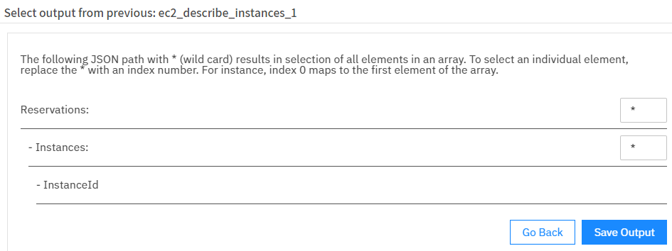 In the output, click Configure, that opens a modal with the JSON Schema of the response output of the EC2 described action.