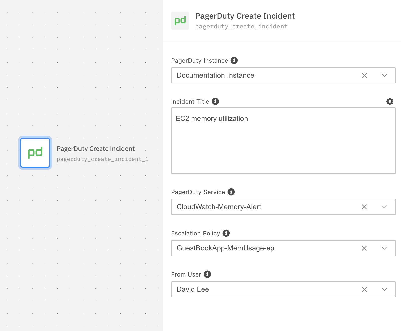 | PagerDuty Service | Select a PagerDuty Service. | True |