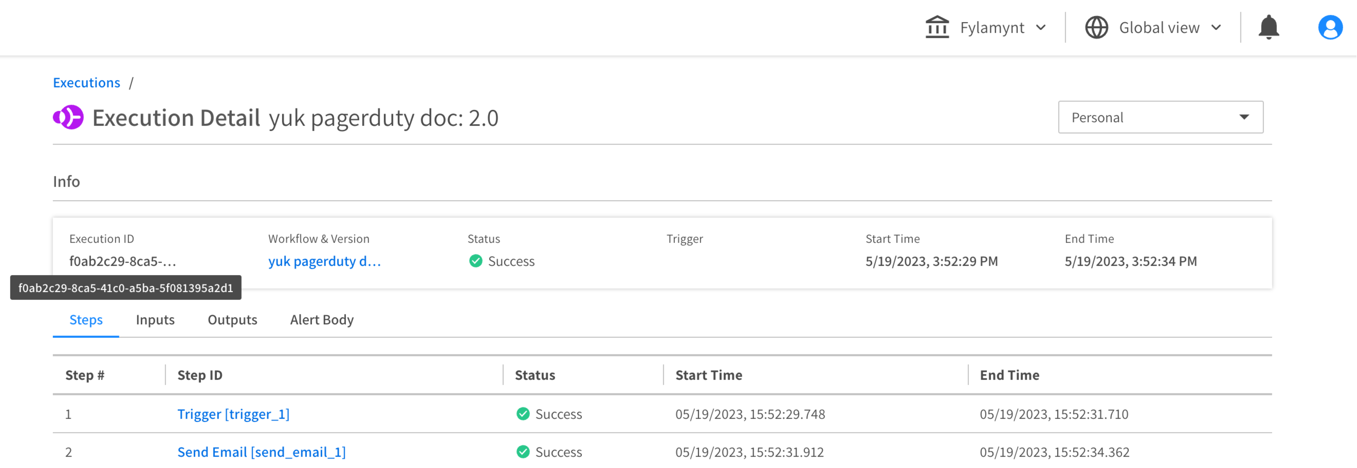 | PagerDuty Incident Id | ID of PagerDuty incident. | True |